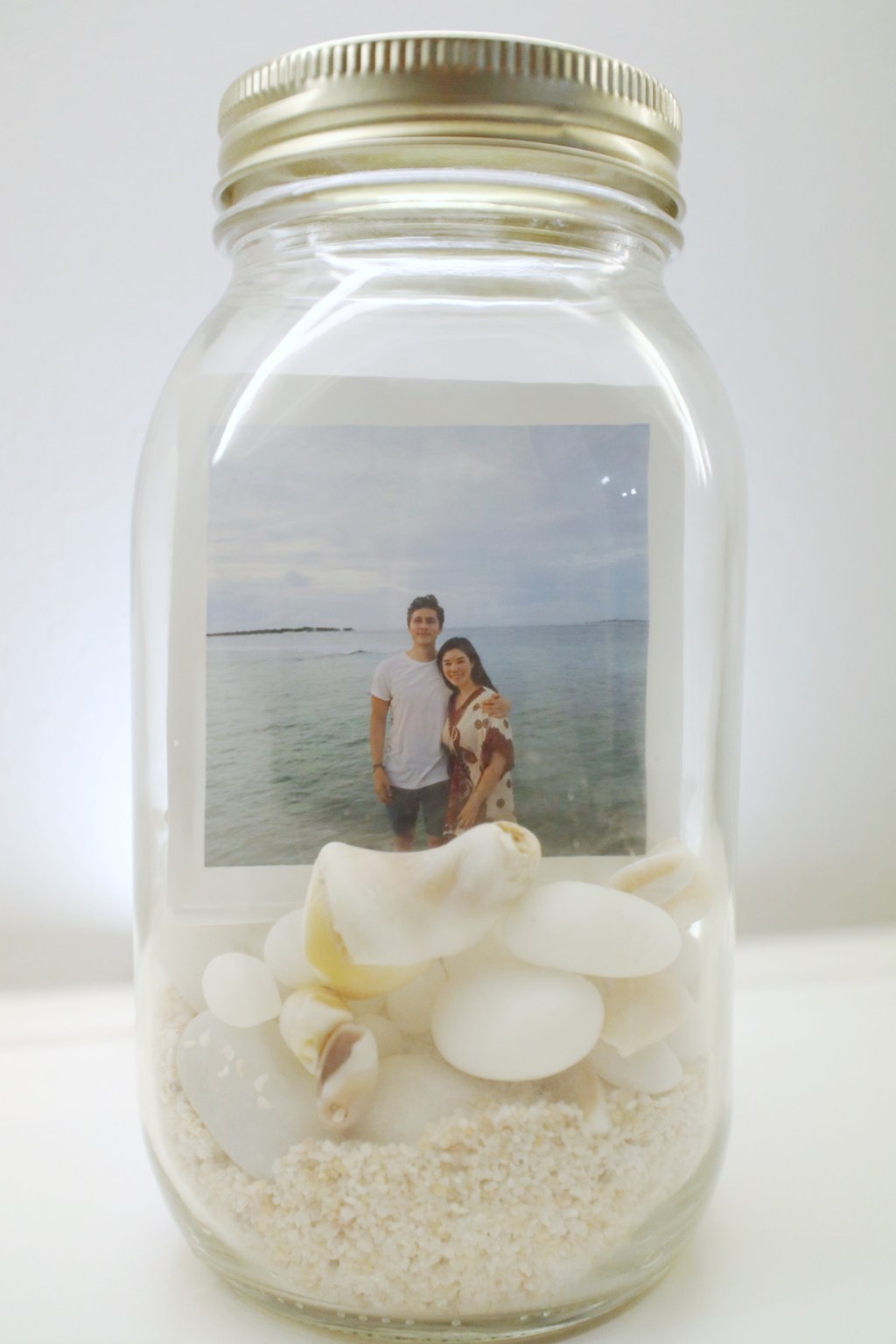 - Trim photos to fit into the jar and neatly place them in!