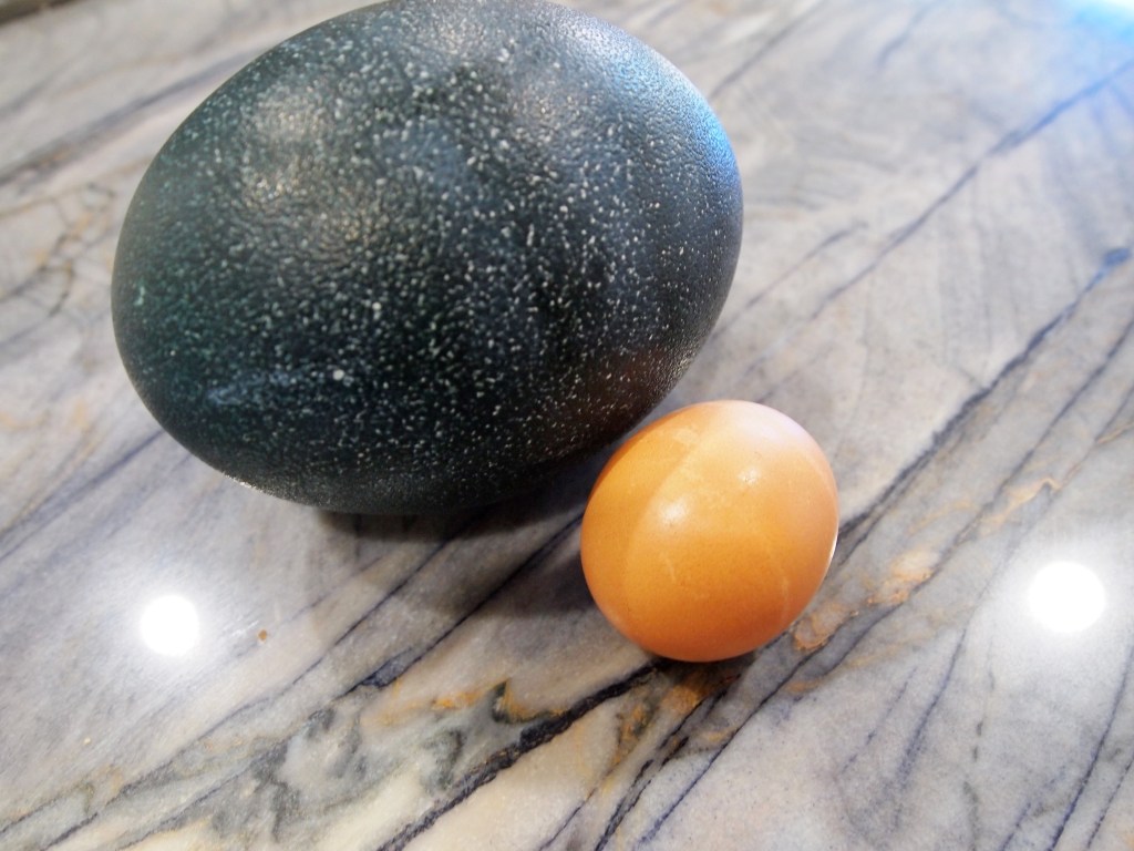 The emu egg was so big and heavy, like a dinosaur egg! Btw that is a Costco Grade AA Large egg for size reference!