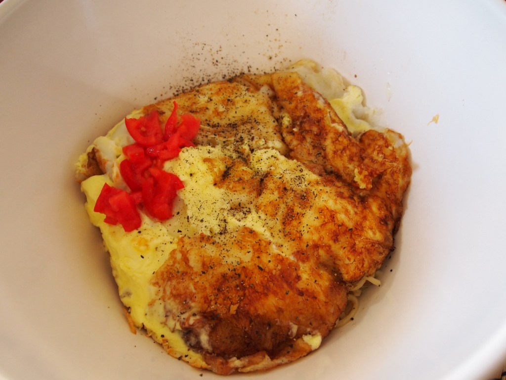 We put what had turned into an egg soufflé over leftover ramen and it was good! Only regret was not using a bigger pan so that the egg could have spread more and not be so thick (thick egg whites is not good LOL).