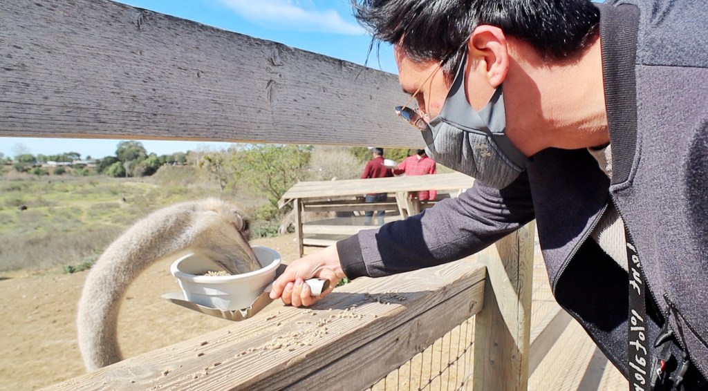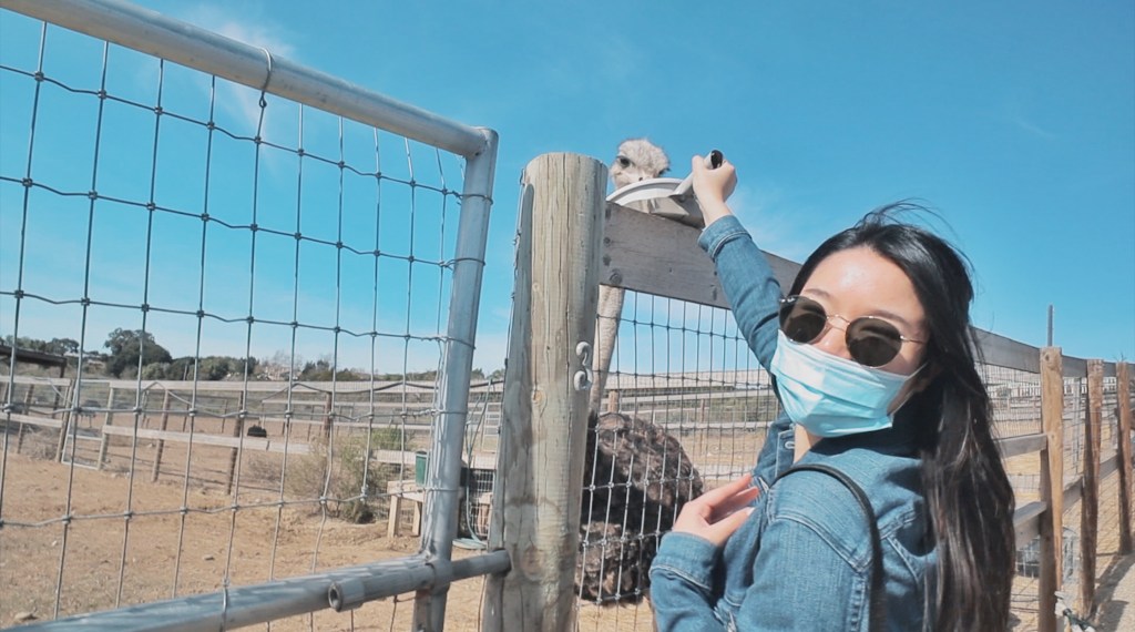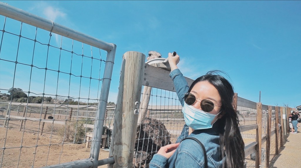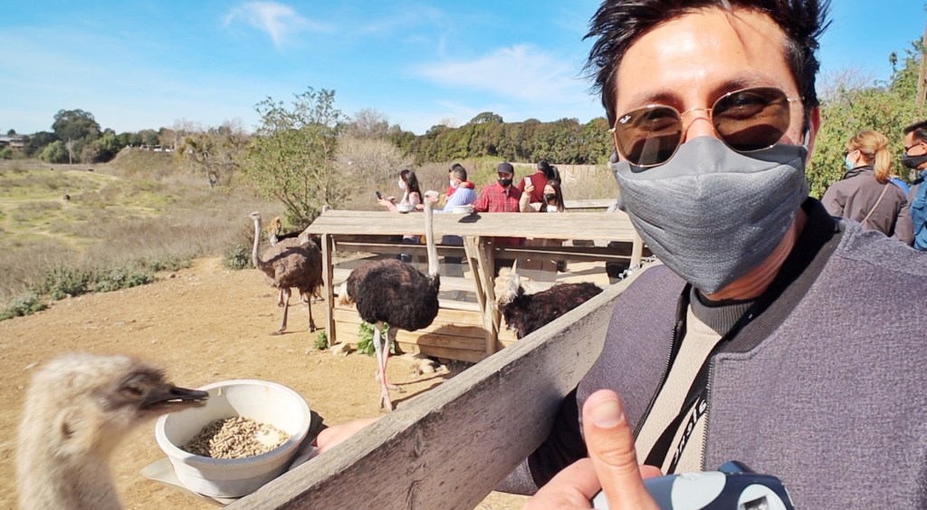 Before we left Solvang, we went to Ostrich Land (literally just a mile or two outside of downtown Solvang) and fed ostriches and emus! Ostrich Land is this huuuge farm with all this land so the emus and ostriches can roam free. They were so cute!! It’s only $5 to enter and for an extra dollar they’ll give you a big bowl of food pellets so you can feed them! If they’re hungry, they’ll come up to you and (semi-aggressively) peck at your bowl to feed!
