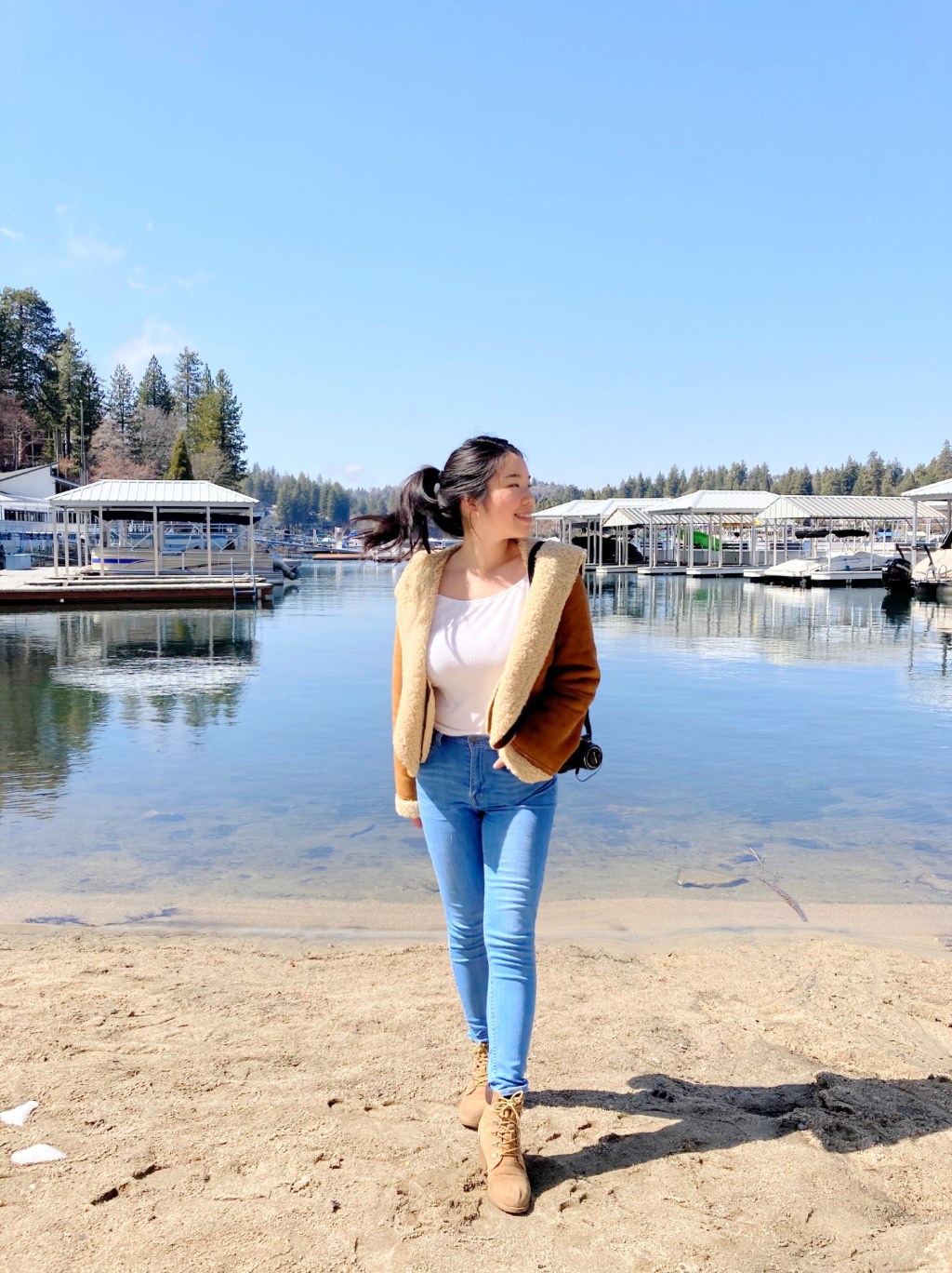 The heavy hitters for this #OOTD are the Timberland-inspired high-heeled booties (LOVE, got them like 5 years ago) and this nordic-chic suede sherling coat from Anthro!