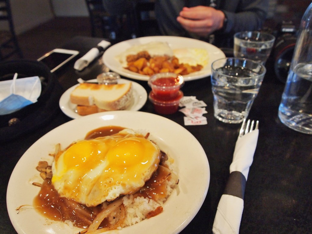 Michael and I ate at Mile High Cafe – it is an…ASIAN DINER!! And they do it really well. Michael got country fried steak and I got loco moco! I haven’t had loco moco in forever. If you’ve never had it, it’s basically hamburger and gravy over rice, usually topped with eggs with mushrooms on the side. It’s a popular dish in Japan/Hawaii!