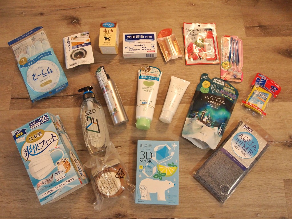 The main fukubukuro bag they had I believe was supposed to be a households bag. I actually like to use japanese cleaning products (since Japan is the cleanest!) so I was happy to receive those, but I was surprised to see that it also contained beauty items (like the women’s bag) and that it did NOT contain any food items! I thought I would at least get some dry japanese pantry items. As such, I think Michael was a little disappointed in the main bag. Since both the general and women’s fukubukuro costed $40 each, if I had to choose one I would recommend the beauty bag since I think its contents were better value and usefulness for me personally. The funniest thing we got was HEARTBURN indigestion medicine hahahaha and and a random drain cover xD