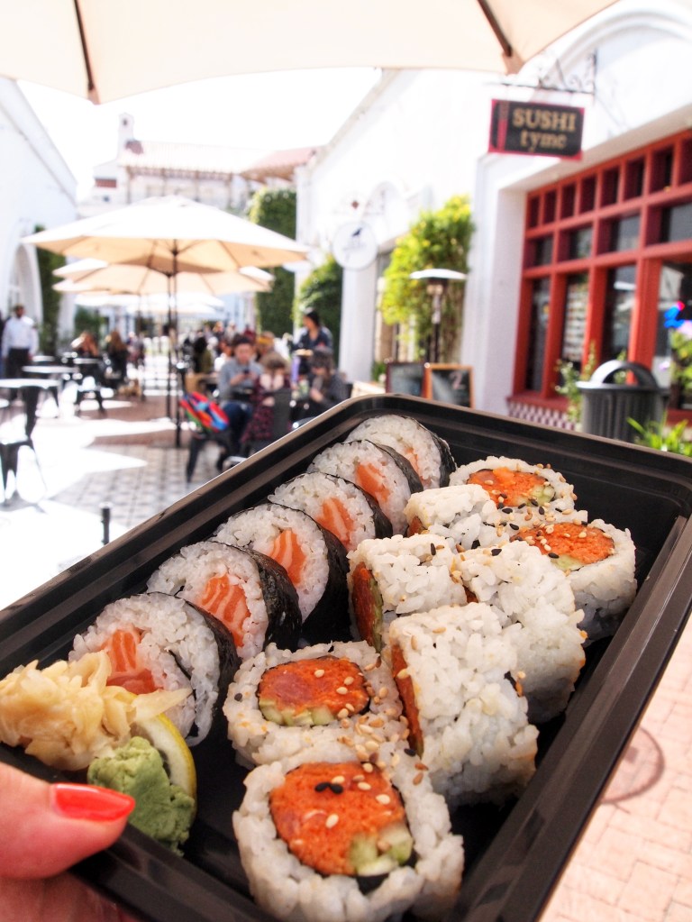 It’s also a great place to grab a quick bite. We shared some delicious sushi from Sushi Tyme!!