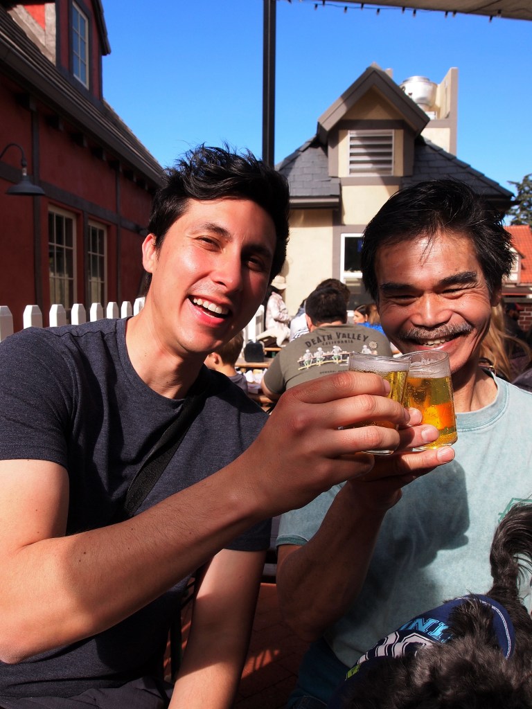 If you don’t want to go on the tour, the one place you HAVE to eat at is the Copenhagen Sausage Garden. I’ve eaten there 4 times in the 2.5 times I’ve visited Solvang 😀 I really love sausage, but even Michael who doesn’t care much for sausages agrees that this place is so good. Get the 3 or 4 sausage sampler (cheddar bacon is our favorite flavor!!) and enjoy it with a giant ice cold beer!! If you don’t have time to eat in the sausage garden (or if you don’t want to wait the longass line), then call ahead and order to-go! Be sure to try all of their craft mustards and get lots of sauerkraut.