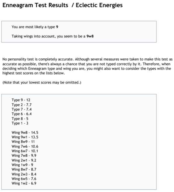 Again, I am not so sure how accurate this test is (for neither me nor MP), but there you have it! Let me know what your enneagram is and your thoughts!!