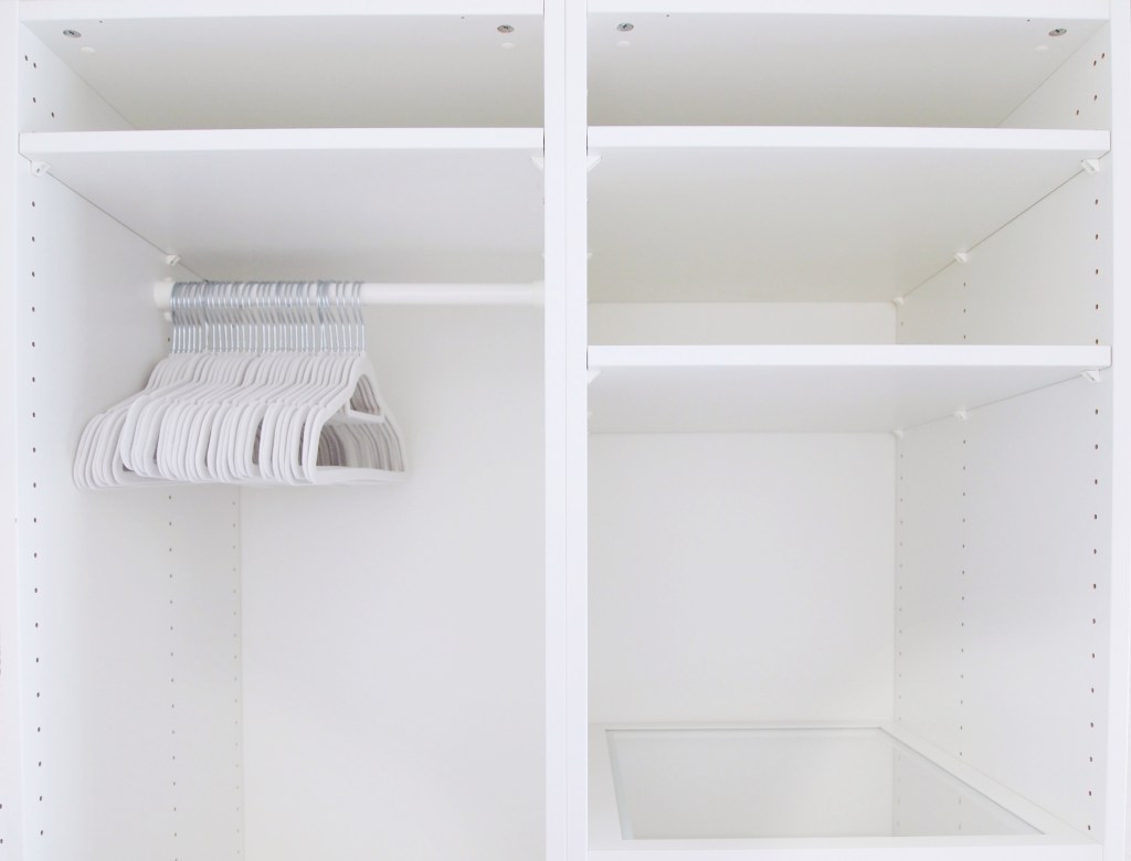 I looked at a LOT (I’m talking hundreds) of wardrobe options (I even looked into the custom route too) and I can 100% for sure say the IKEA PAX is the way to go. Don’t bother with the hours of research, I’ve done it for you, just trust me and go with the IKEA PAX. I know some people don’t like IKEA because they think it can look cheap, but I personally like IKEA and I think the all-white PAX actually looks really, really nice (I mean, look at it!).