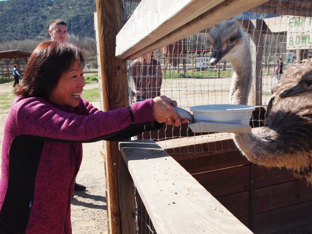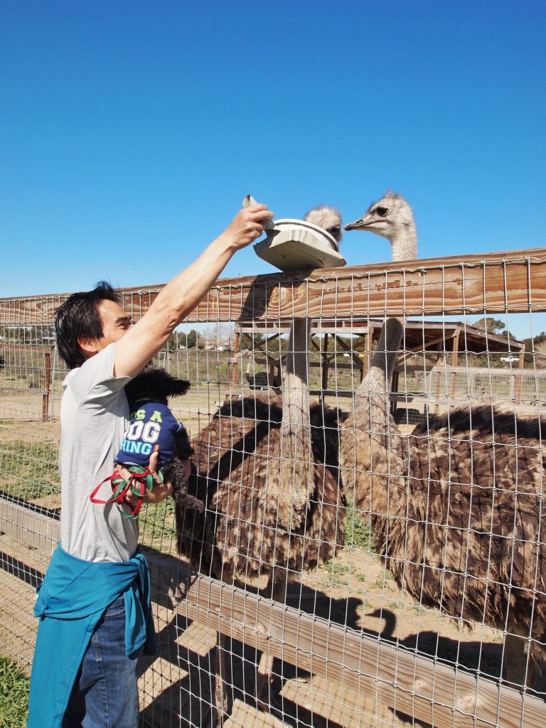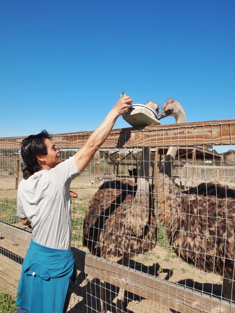 Happy Saturday, everyone ❤ I hope you don’t mind me dropping this little photodiary of my fam and I! We took my parents to Ostrichland and my mom especially loved it – every second I turned around and she was running off to another spot to feed more ostriches and emus (she was like an ostrich/emu whisperer!). We did buy an ostrich egg AND an emu egg (the emu eggs were on sale!!). We made a grand breakfast to eat them both (see last year’s attempt) and my dad now has the egg shells on display on our table lol.