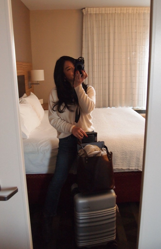 I travelled a LOT for work, in fact I used to travel every single week! Typically, I took the first flight out Monday morning (or Sunday evening if there was an early Monday meeting) and then flew out Thursday or Friday to be home for the weekends. Nowadays I don’t travel too much for work – I had a business trip last month and have another one coming up next week – but I’ve taken well over 100 work flights so trust me when I say I have my work suitcase and business trip routine on-lock. In fact, my work suitcase packing was so streamlined that MP used to often pack my suitcase for me because I would be so exhausted from the work travels lol.