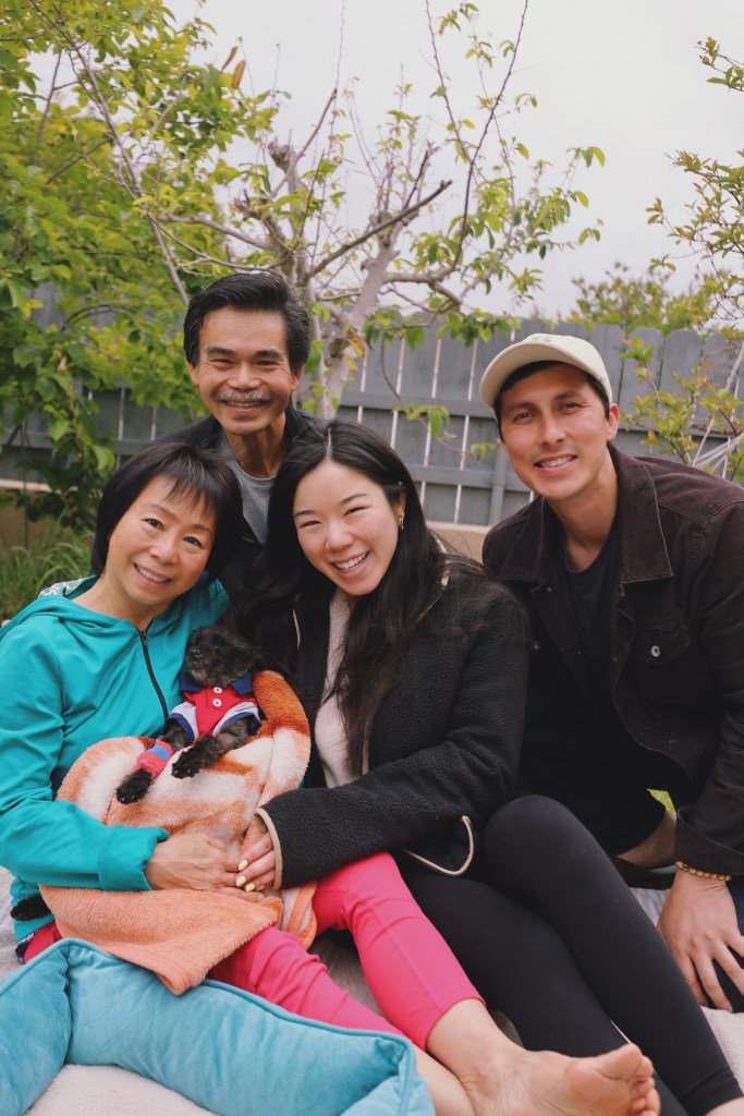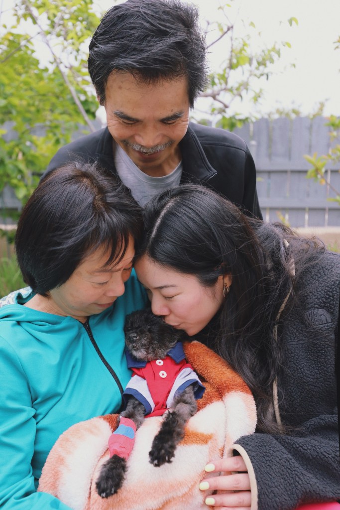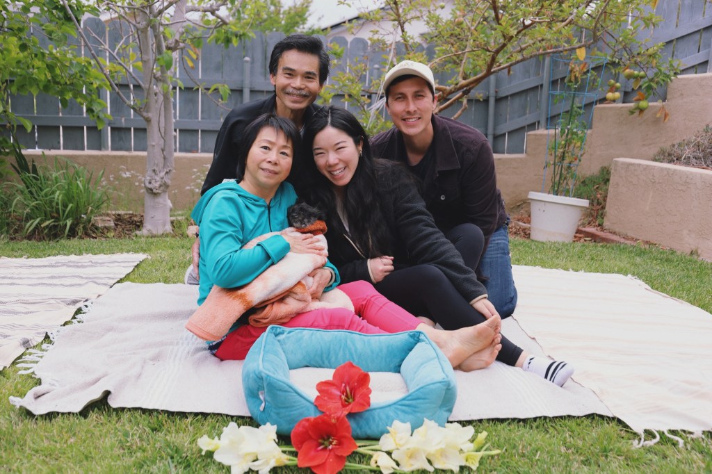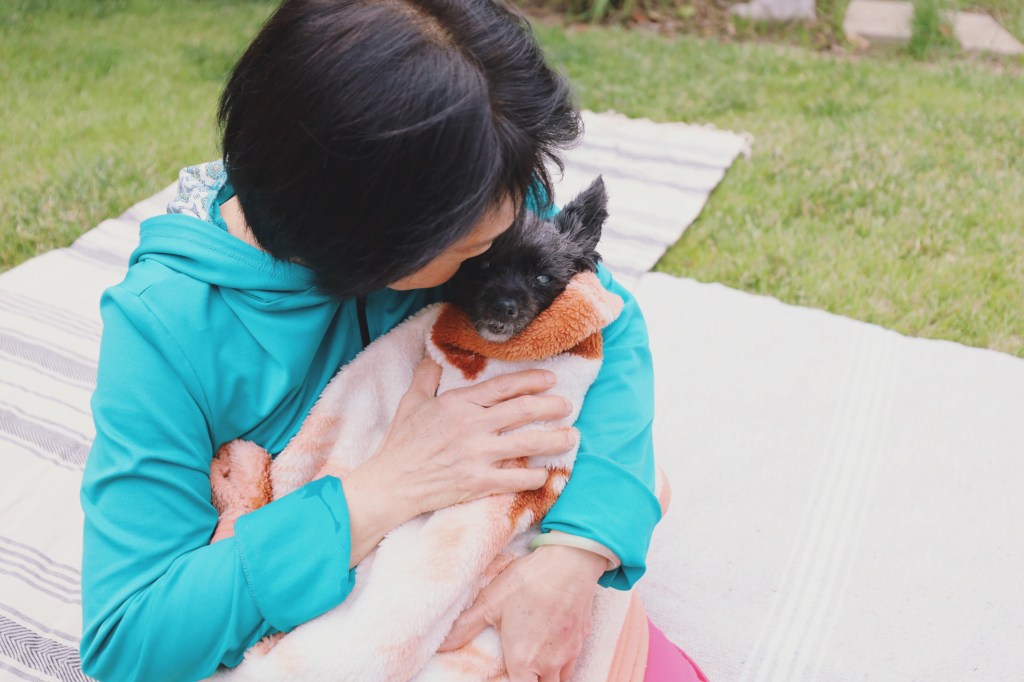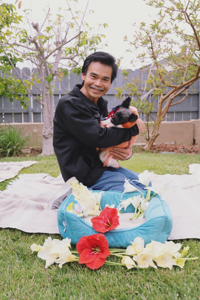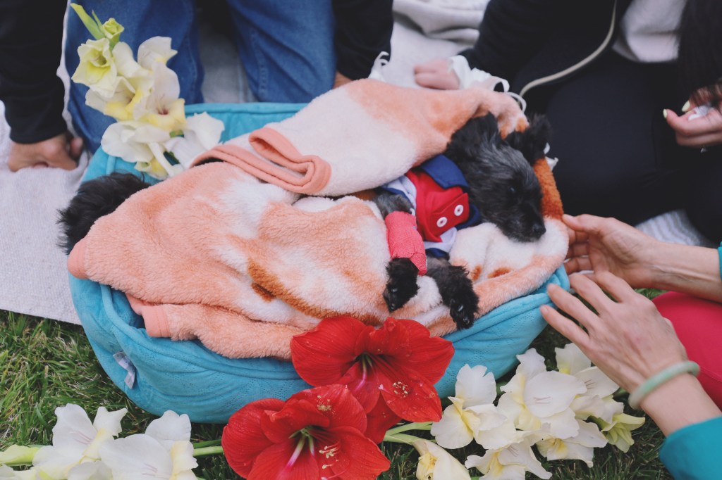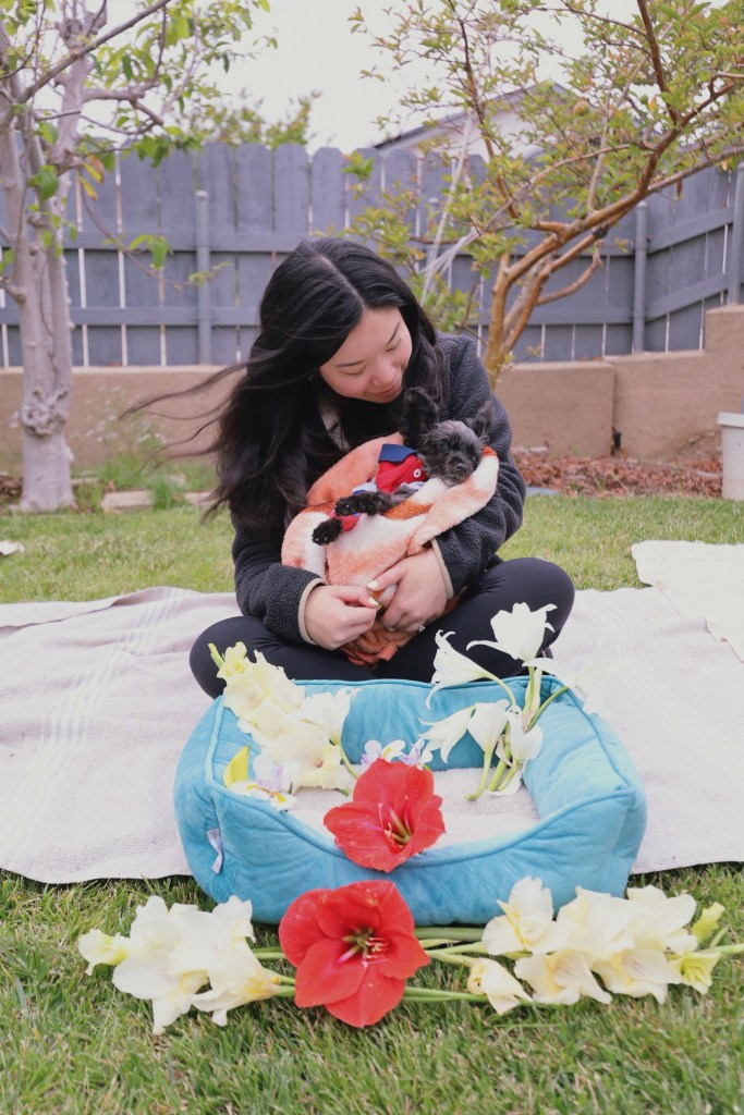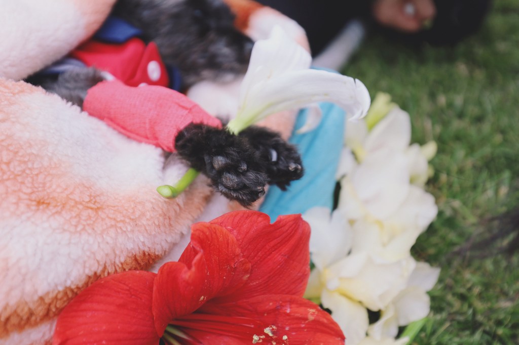 I rested there. In my dog bed. Wrapped up in a blanket. With flowers all over me. In my favorite place ever, our backyard. Staring at my Papa, Mama, and Jeje.