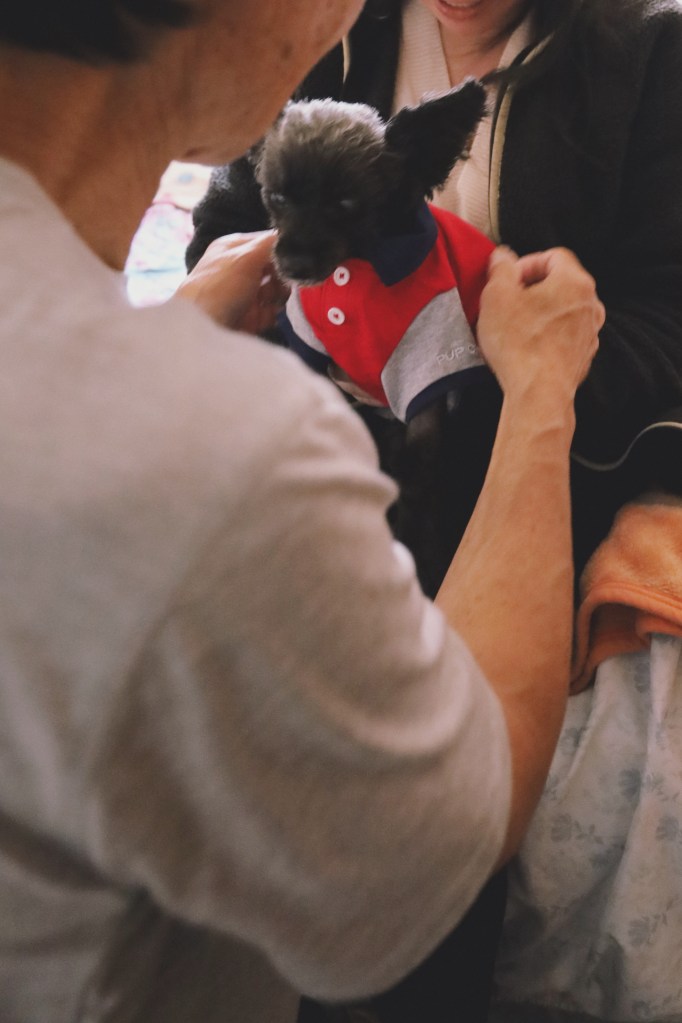 Jeje picked out a handsome shirt for me to wear. It was brand new with the tag still on, and it even matched my blue and red heart wraps perfectly. Papa helped to put it on me. Everyone said I looked so, so handsome.